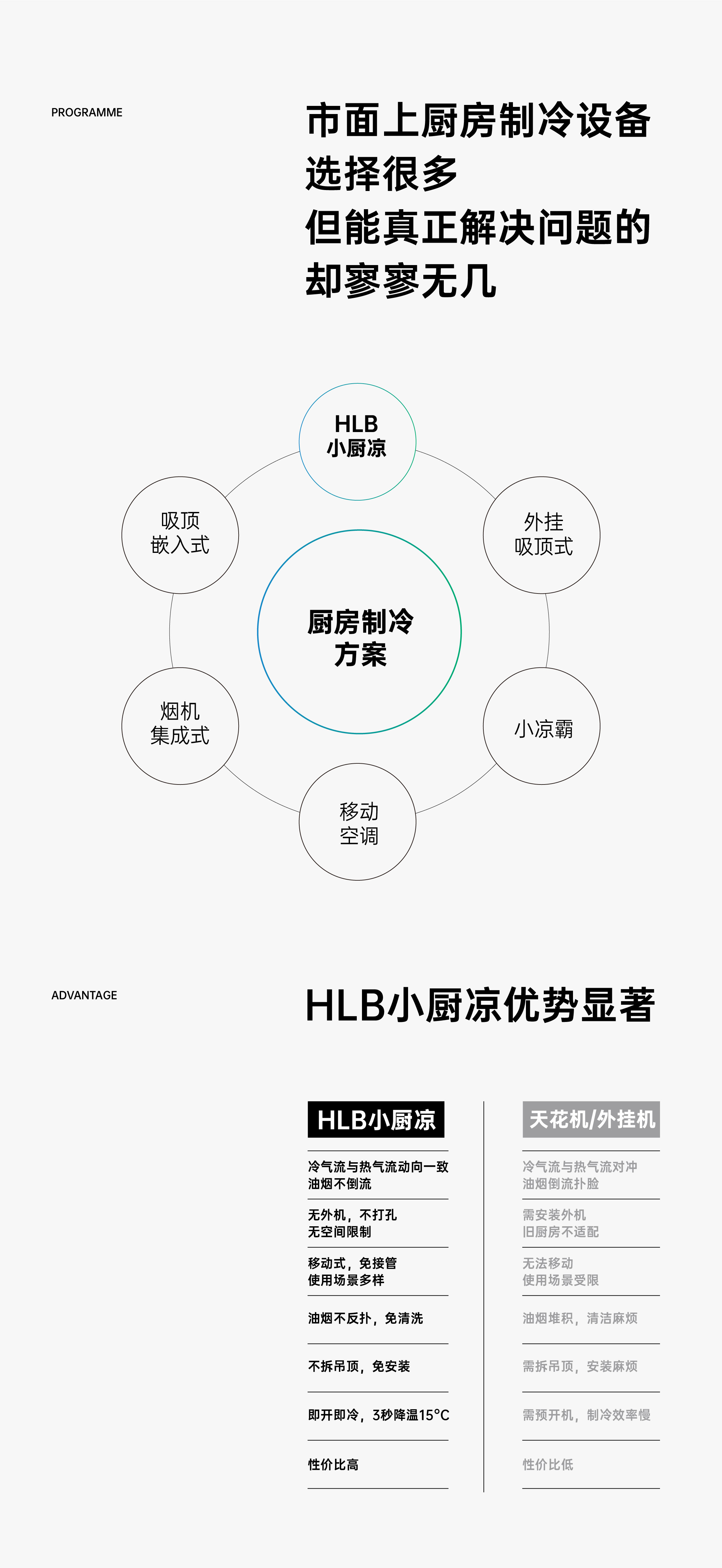 过去HLB是一家专注于外贸出口的制造型厂家,对国外市场的销售9:1 。携手省狮进行全面升级转型,突破外贸依赖,聚焦国内市场,建立制冷细分品牌。首先从品牌深度咨询切入,调研与分析诊断后,进行品牌形象升级。打造核心单品厨房空调视觉与TVC,利用行业巨头打心智,HLB快速抢占市场。