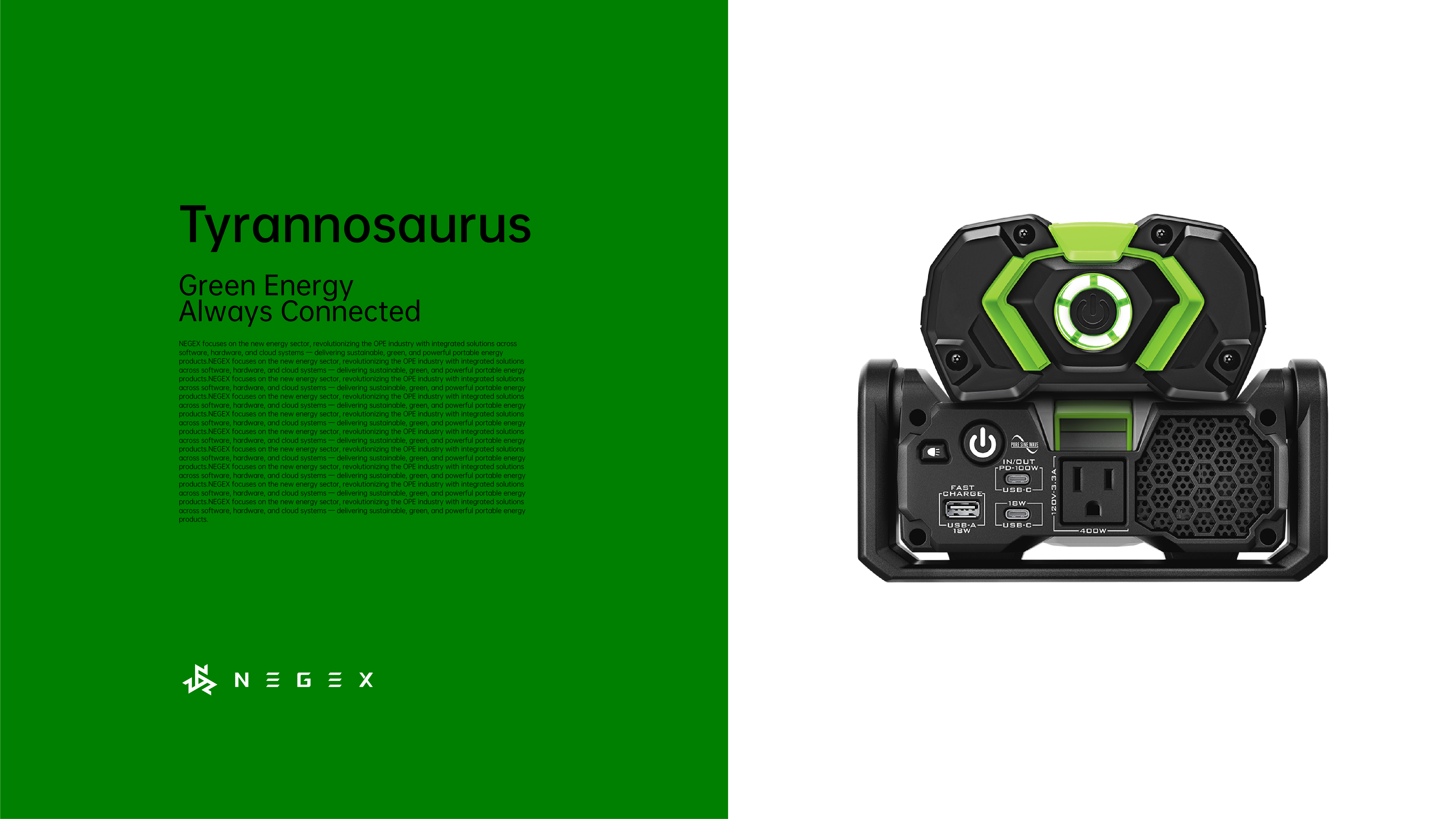 项目于 2025 年 5 月 启动,8 月 完成完整品牌系统构建,并于 10 月 在美国肯塔基州 OPE 机械设备展完成全球首发。首款面向伐木及工地作业场景的新能源解决方案一经发布,即获得行业与市场的广泛关注与积极反馈,NEGEX 迅速成为 OPE 领域备受瞩目的新能源新锐品牌。
