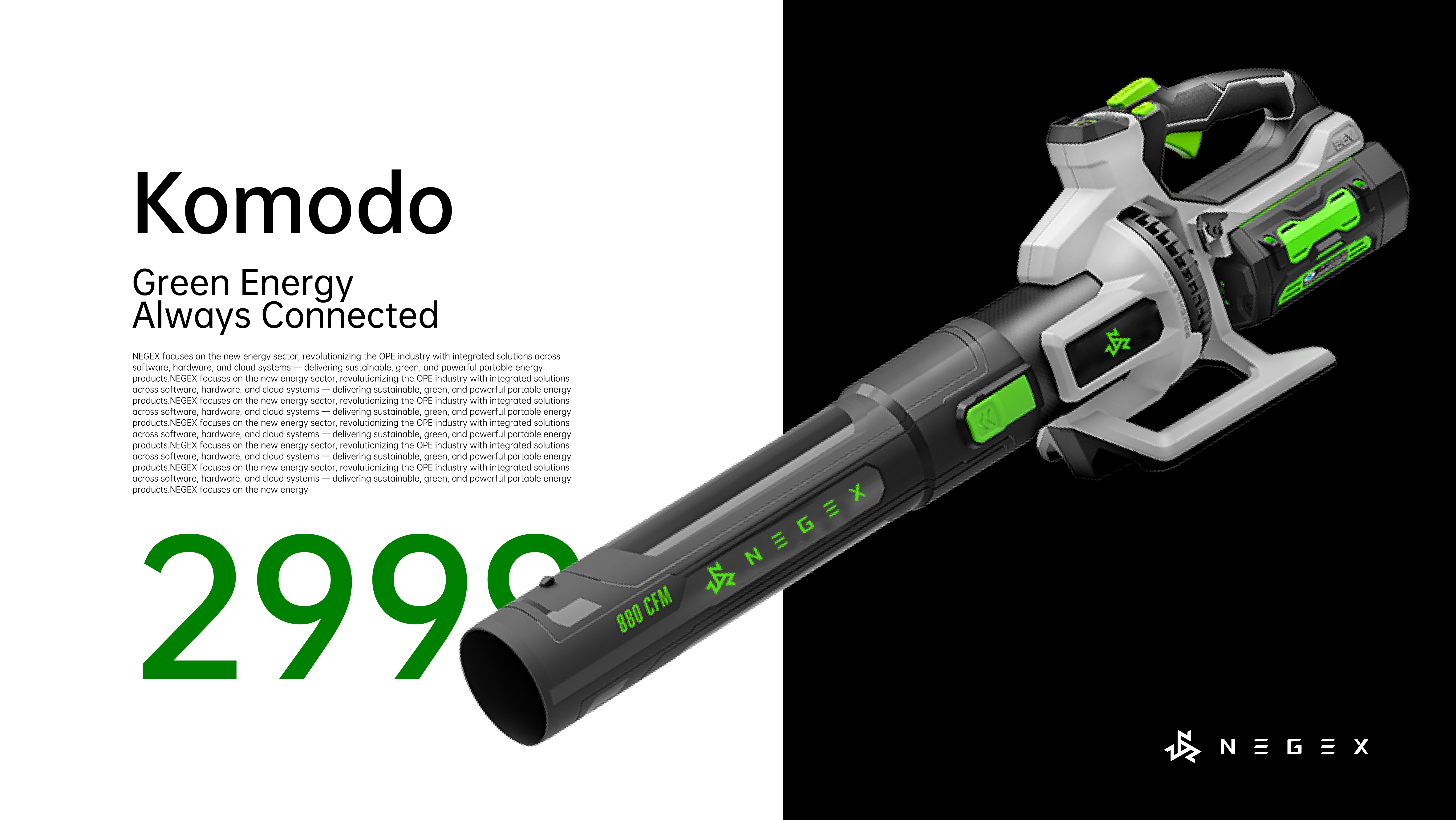 项目于 2025 年 5 月 启动,8 月 完成完整品牌系统构建,并于 10 月 在美国肯塔基州 OPE 机械设备展完成全球首发。首款面向伐木及工地作业场景的新能源解决方案一经发布,即获得行业与市场的广泛关注与积极反馈,NEGEX 迅速成为 OPE 领域备受瞩目的新能源新锐品牌。